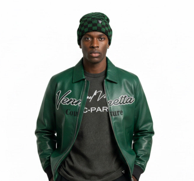Design & Craftsmanship Featuring a bold emerald green and black checkerboard pattern, this beanie makes a statement without saying a word. The geometric squares are expertly knitted into the fabric, creating visual depth and texture that catches the eye from every angle. Each checker maintains crisp definition throughout the ribbed knit construction, showcasing superior manufacturing quality.